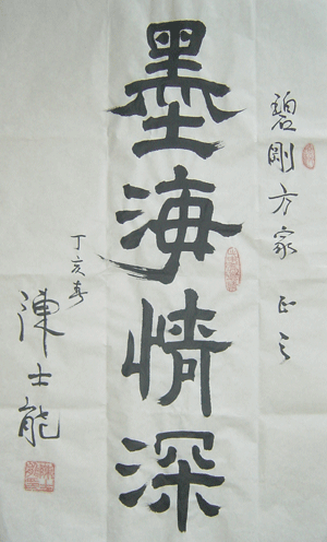 随后,陈士能顾问将自己的书法作品“墨海情深”赠于汪碧刚秘书长,汪碧刚秘书长将自己的一幅书法作品回赠给陈士能顾问。