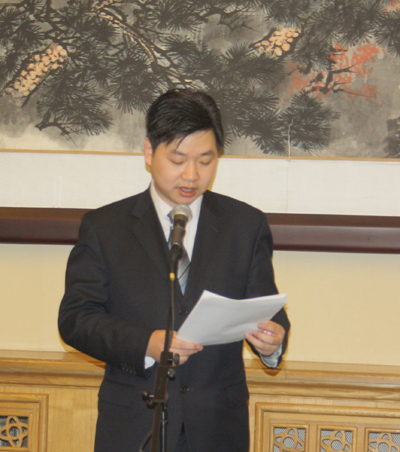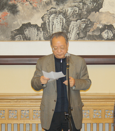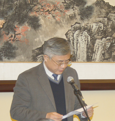 随后,张道诚院长致新年贺辞。汪碧刚秘书长汇报了本 院成立 5 年来的发展情况和今年的工作思路, 他说,名人书画院成立以来,积极搭建书画名家与社会名人交流互动的平台,致力推动“名 人名家书画精品 ”自主品牌战略, 成功举办了 5 届“中国名人名家书画精品展”; 协办了“第二届中国书法兰亭奖”等系列书画交流活动 ; 先后为 100 余位 名人名家举办个人书画展或联展; 积极参与社会公益事业, 举行了 30 场名人名家书画笔会和慈善赈灾活动 。今年将启动以建党 90 年为主题的第六届中国名人名家书画精品展等系列活动。