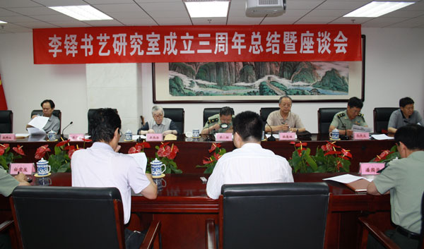 会议听取了汪碧刚关于李铎书艺研究室成立三周年的总结汇报。 2009年6月25日,北京世纪名人国际书画院会同军事博物馆抽调专门人员,成立了李铎书艺研究室,三年来,紧紧围绕李铎书法艺术的深入研究与社会贡献的中心任务、服务于社会主义文化大繁荣大发展的工作大局,开展了系列工作,影响深远。李铎书艺研究室建立了近千万字的李铎书艺数据库;完成《李铎大事记》初稿;协助承办了“李铎师生书画展”、“李铎诗词书法展”;编辑出版了《李铎图片集》、《李铎藏印集》;李铎影视专题片的摄制工作已基本完成;积极配合湖南醴陵“李铎艺术馆”的筹建工作;开展了“走基层、送文化”系列活动;《 李铎书艺研究》(第一卷)即将由中国文联出版社正式出版。