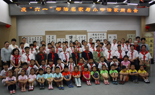 参观北京西城区少年宫小朋友书法作品并合影