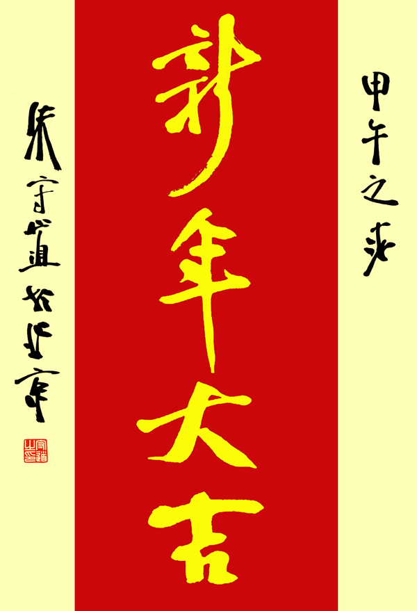 朱守道(北京世纪名人国际书画院副院长、《名人名家书画报》总编、中央国家机关书法家协会副主席、中国书法家协会理事、中央文史馆书画院研究员)题写“-新年大吉”,以示祝贺。