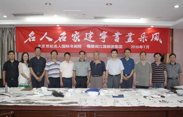 2015年7月23日至28日,北京世纪名人国际书画院、福建闽江源旅游集团有限公司联合举办“名人名家建宁书画采风”活动。全国政协原副秘书长、中国书协会员、名人书画院院长张道诚率领书画名家一行赴福建建宁采风,全国青联委员、中国书协青少年委员会委员、名人书画院副院长兼秘书长汪碧刚,中央国家机关美协常务副主席、名人书画院中国画创作委员会秘书长陈培伦,中国美协会员、名人书画院副秘书长、中国画创作委员会委员王巨亭、李小成,名人书画院中国画创作委员会常委孙德才、薛居波、陆仟波等参加采风活动。中国书协理事、中国金融书协主席、名人书画院副院长张铜彦为本次活动提供了多幅作品。中国书协会员、三明学院党委书记曾祥辉,建宁县委书记郑剑波,县长潘闽生,县委常委、宣传部长张炜琳,闽江源国家级自然保护区管理局局长陈炳云,闽江源国家级自然保护区管理局党委书记余贵龙,以及县委办、县旅游局、闽江源旅游集团公司等相关人员分别陪同。