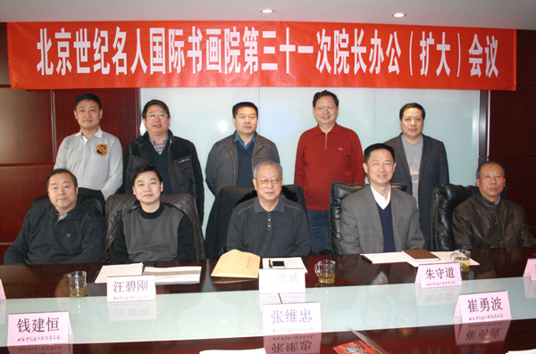 2015年12月12日,北京世纪名人国际书画院召开第三十一次院长办公(扩大)会议,全国政协原副秘书长、名人书画院院长张道诚主持会议并讲话,中国书协第六届理事、名人书画院副院长朱守道,中国书协青少年委员会委员、名人书画院副院长兼秘书长汪碧刚,名人书画院副秘书长赵勇、张维忠、崔勇波、李小成、王巨亭,名人书画院中国画创作委员会秘书长陈培伦,名人书画院办公室主任刘欧祥等参加会议。