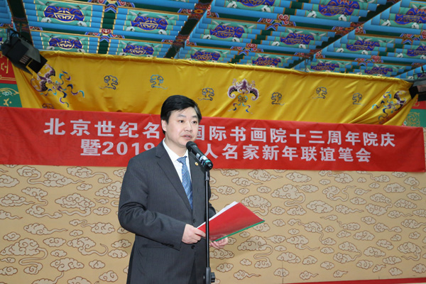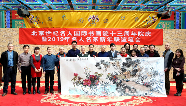 2019年1月6日,北京世纪名人国际书画院在中国政协文史馆举行名人书画院十三周年院庆暨2019名人名家新年联谊笔会。中国人民解放军上将周坤仁,中央和国家机关部级领导陈士能、贾祥、卢昌华、王治国,中国人民解放军少将苏庆玉、杨念成,全国政协原副秘书长、名人书画院院长张道诚,中国书协顾问、名人书画院副院长张飙,中国书协历届理事、名人书画院副院长朱守道、赵立凡、张铜彦,中国书协理事张坤山、颜振卿、张维忠,中央电视台新闻主播长啸,书画家杨骥川、罗勤、李瑞涛、孙德才、赵勇、薛居波、李小成、王巨亭、钱建恒、彭一超等首都名人名家100余人参加活动。全国青联委员、中国书协第六届青少年工作委员会委员、名人书画院副院长兼秘书长汪碧刚主持活动。